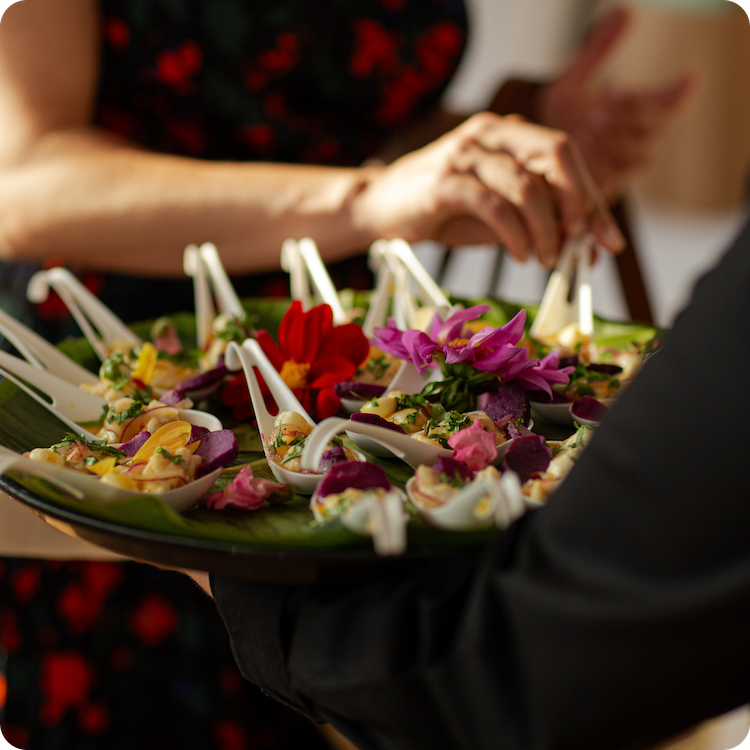 We offer party catering for a wide range of off-premise events, covering planning, food, drinks, staffing and rentals. Our team works with a number of venues and provides passed items, plated service, and buffet catering for everything from intimate cocktail parties and weddings to corporate events and fundraisers.