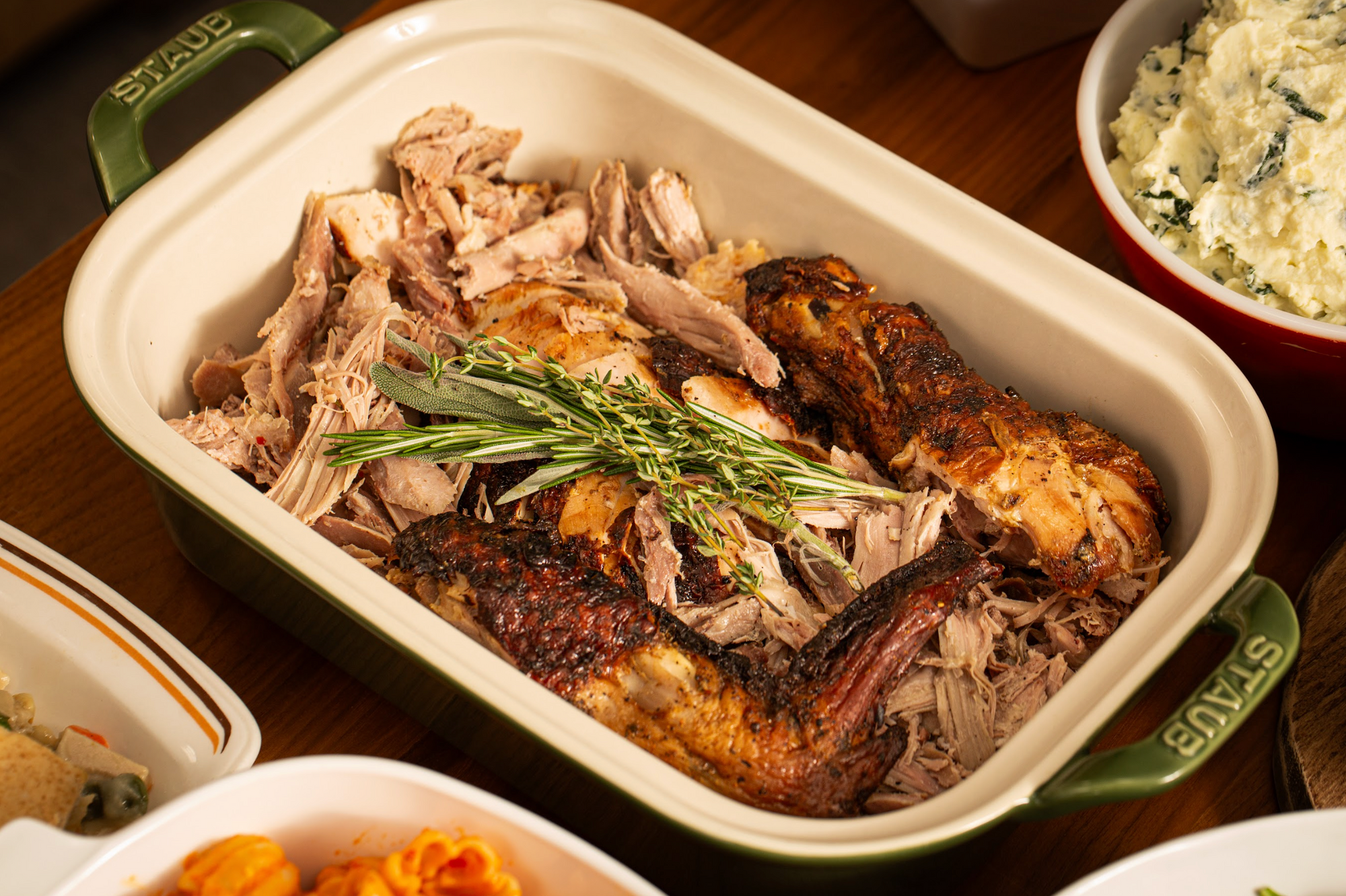 Sourced from the Hudson Valley, turkeys are free of antibiotics and hormones. Made to order, we confit the thighs, legs, and wings and sous vide the breast before finishing to perfection with a reverse sear. Turkeys come carved for the perfect centerpiece of your catered Thanksgiving celebration.